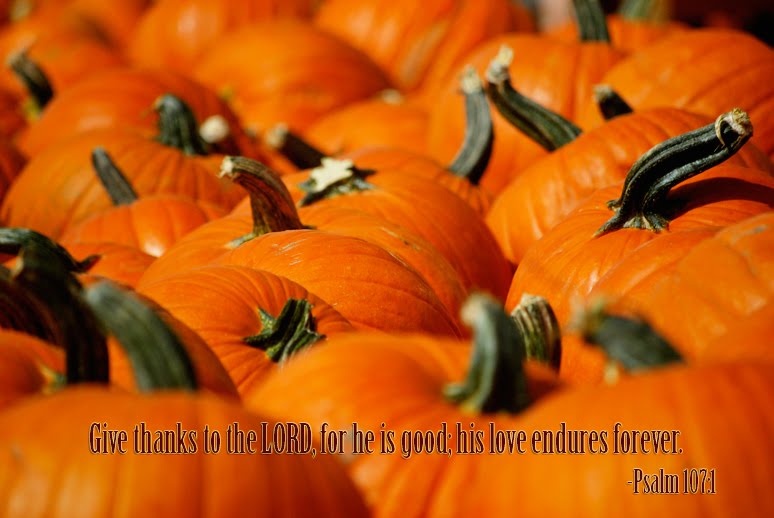 "Give thanks to the Lord, for he is good; his love endures forever."- Psalm 107:1 There are so many wonderful things about the fall season. The beautiful colors, the wonderful fall baking (pumpkin muffins, pumpkin pie...anything pumpkin...mmmm!), the smells. It is a wonderful season with s…